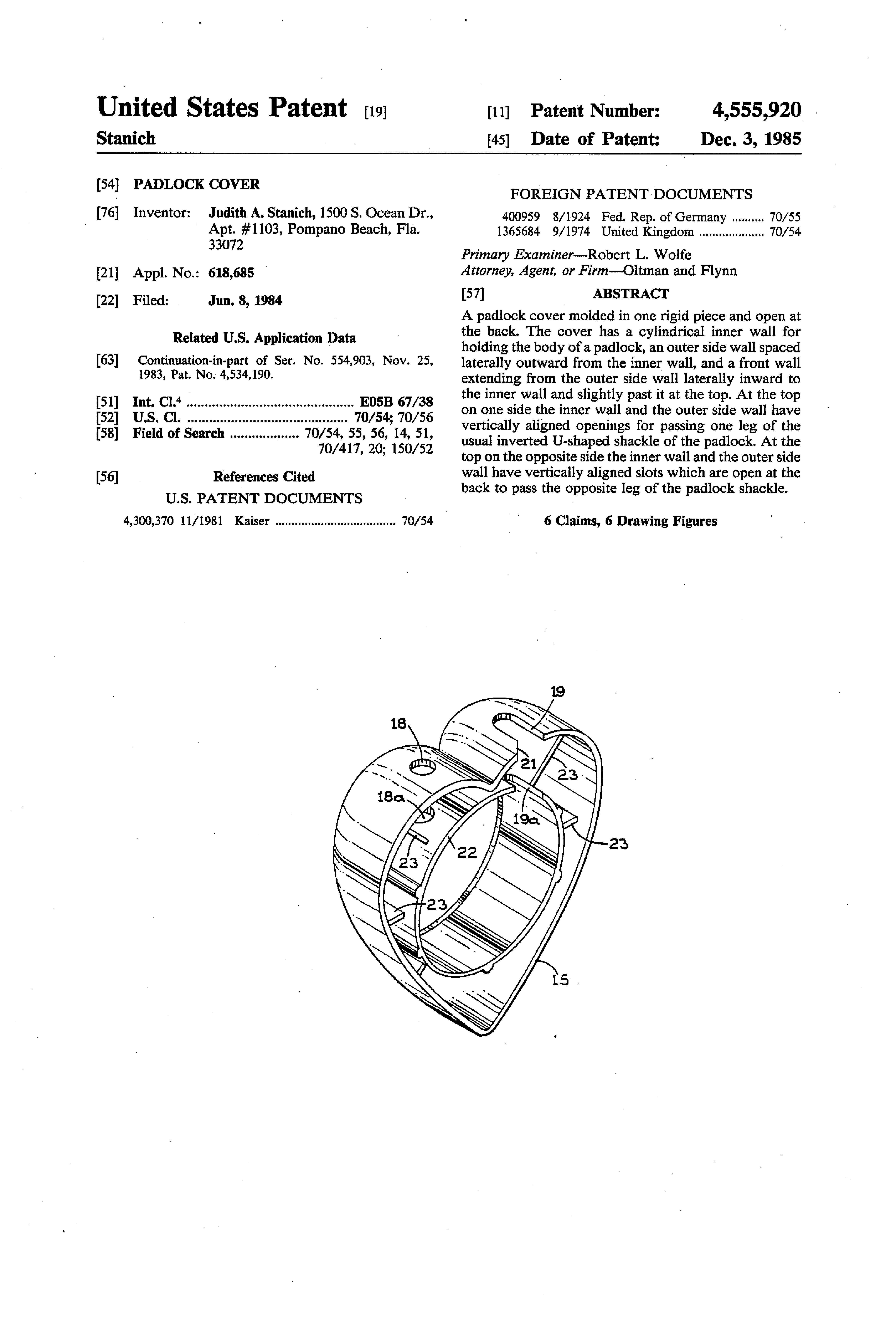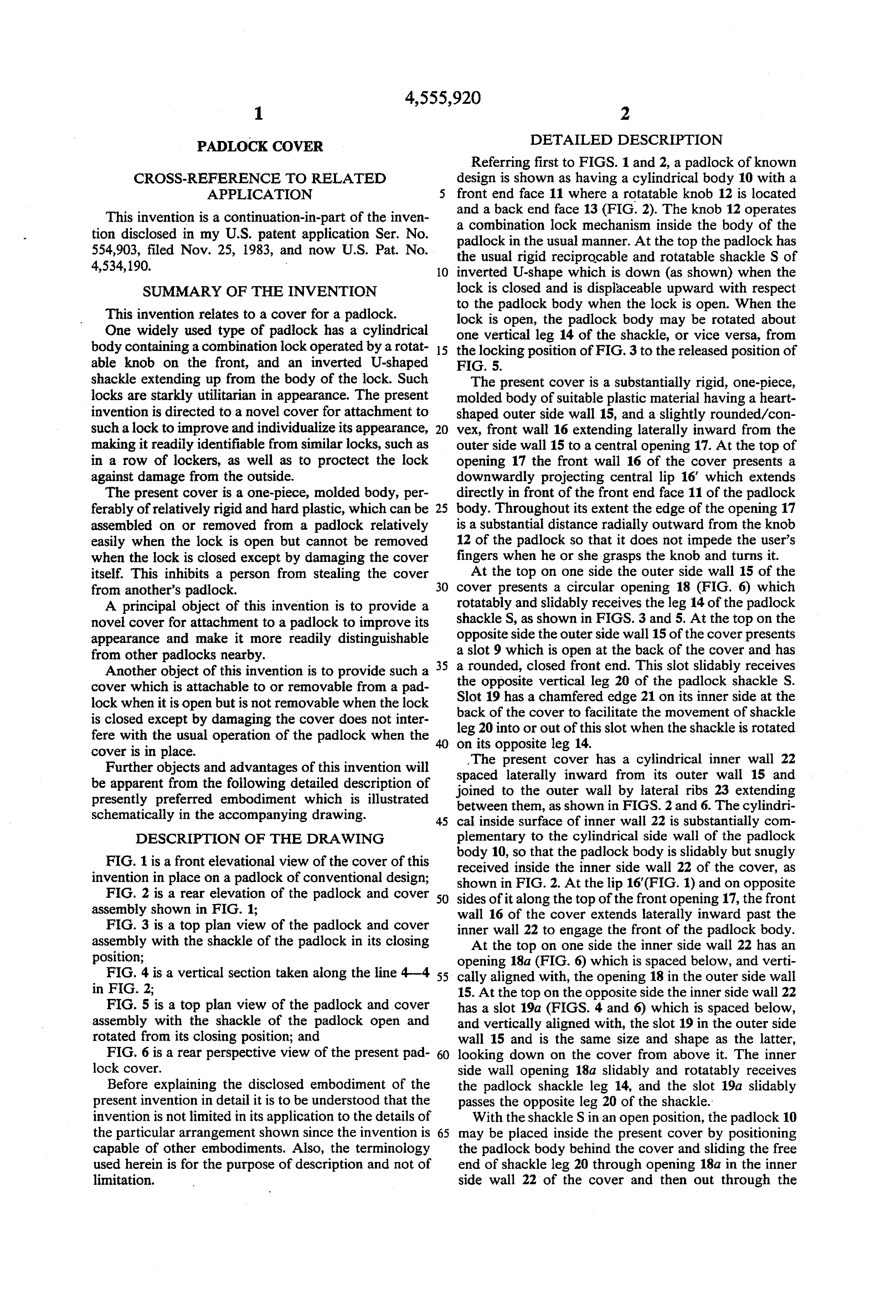 Padlock Patent — Keyed