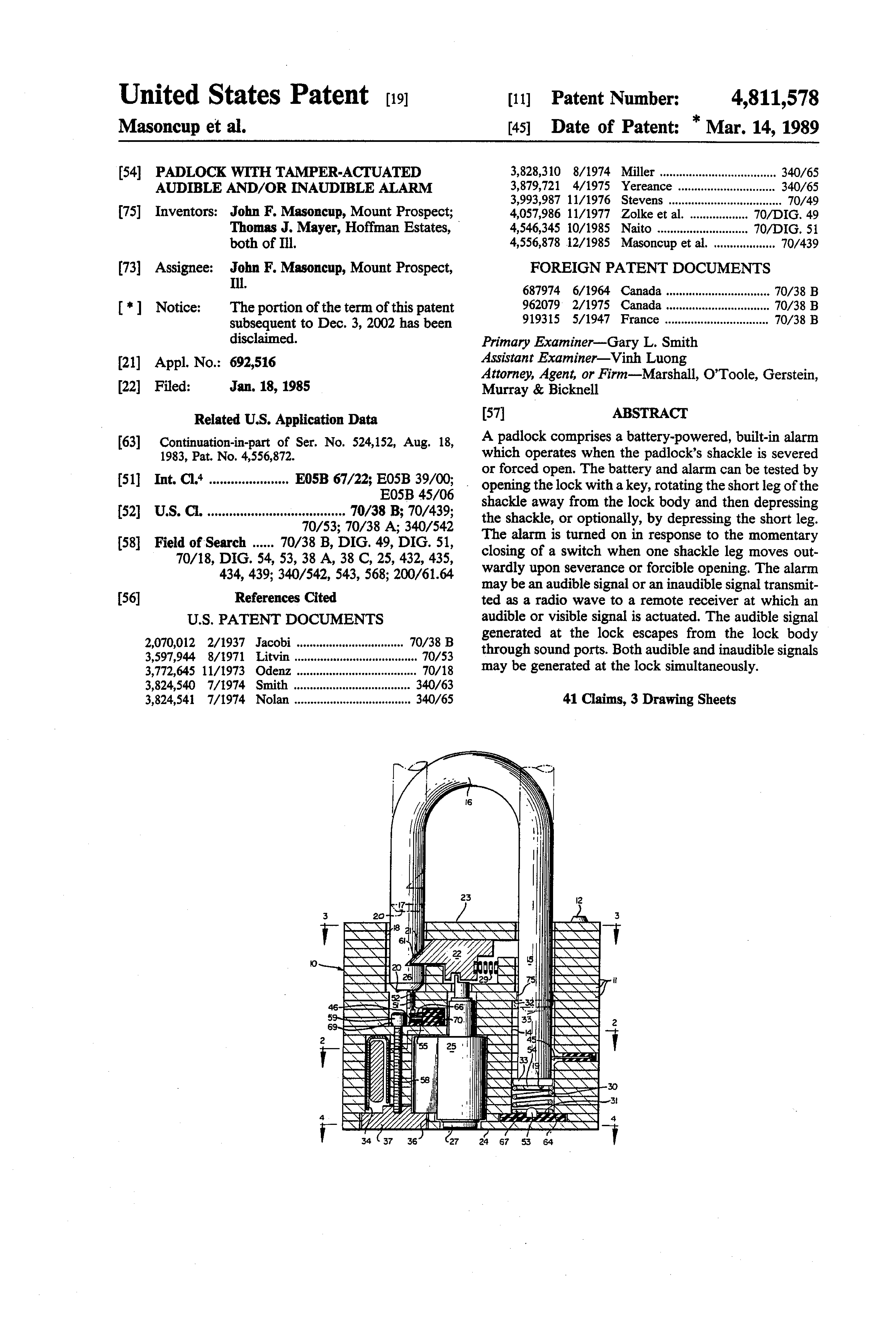Padlock Patent — Keyed