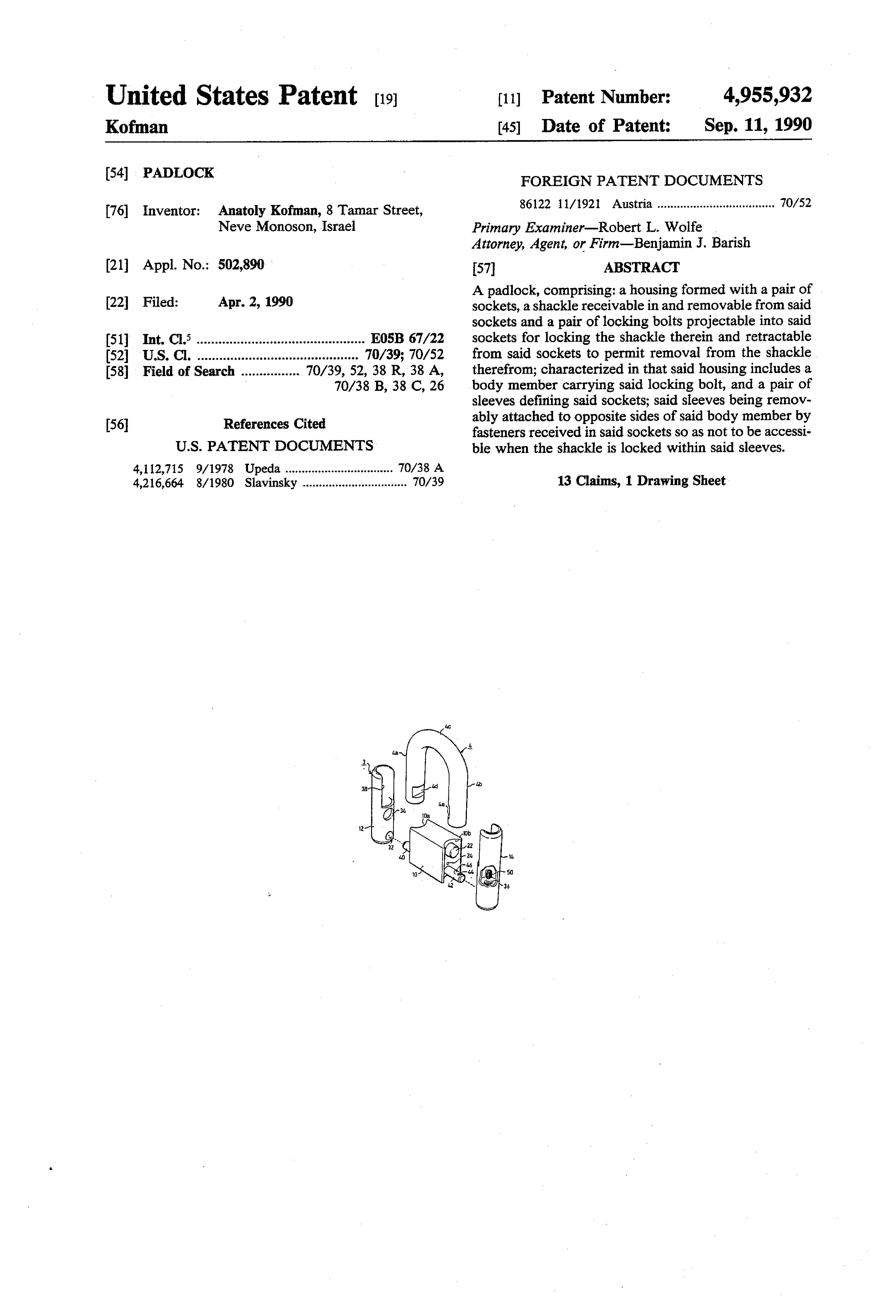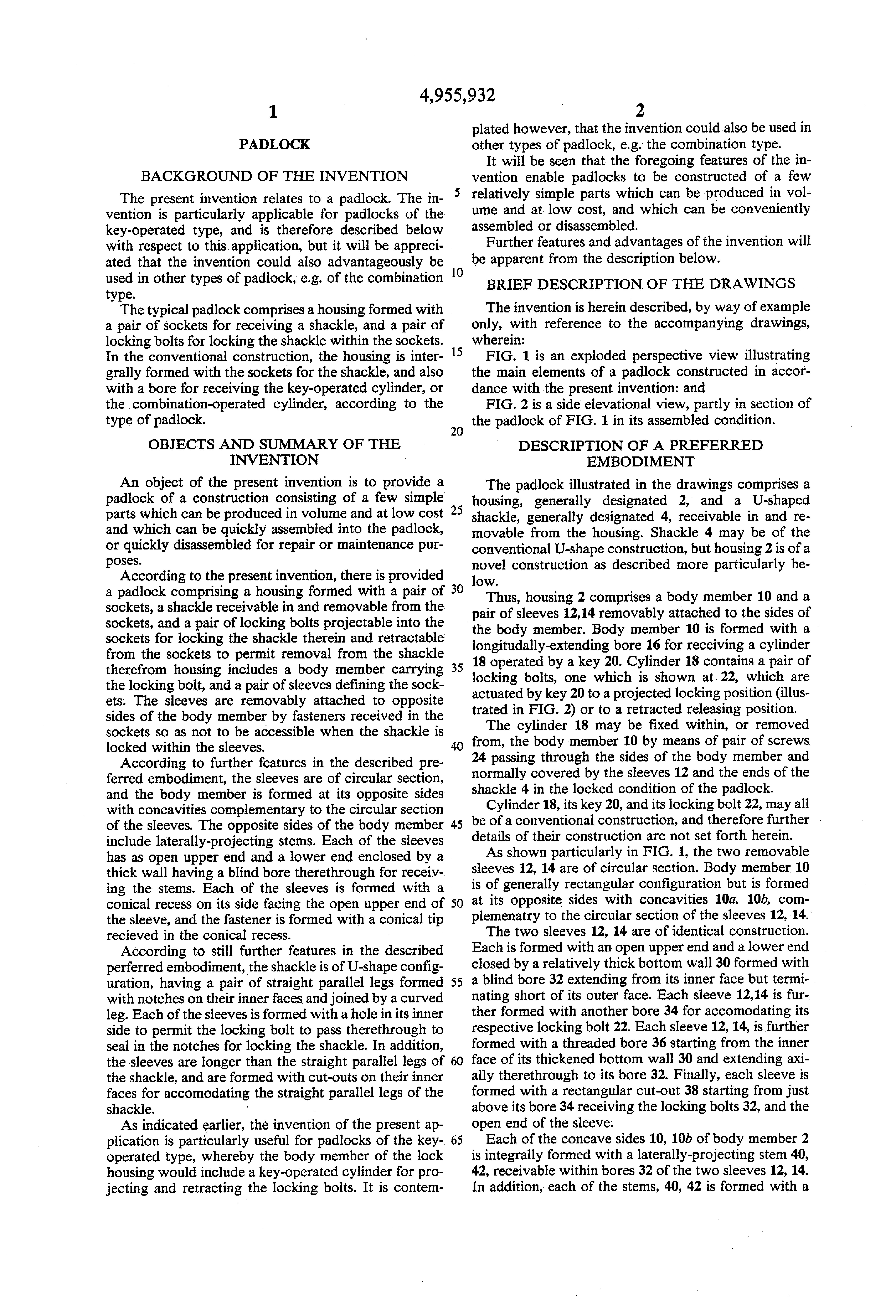 Padlock Patent — Keyed