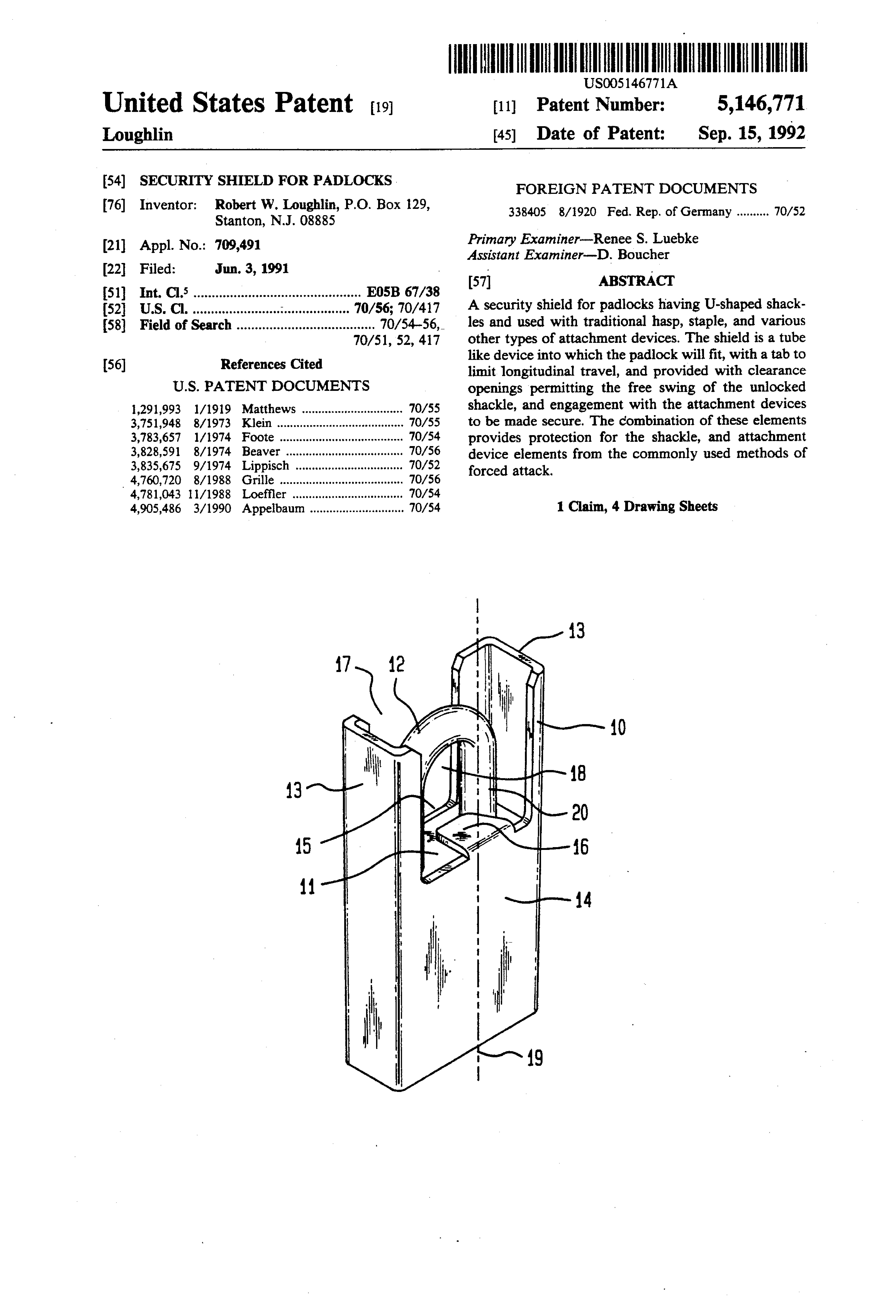 Padlock Patent — Keyed