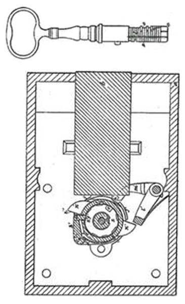 This original mechanism was for safes and doors. This lock was manufactured by Lewis Jennings. | Classification: 70/134