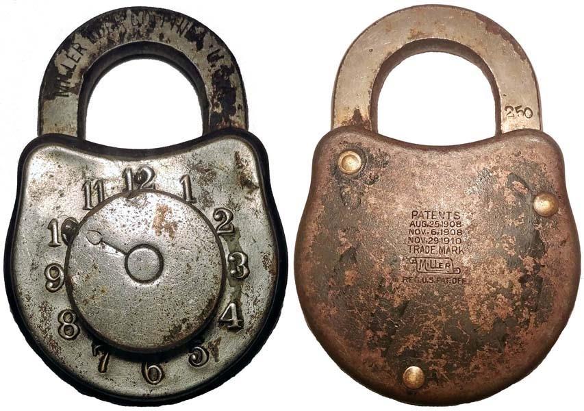 Yale bought Miller in 1925. This original mechanism patent was used on some padlocks. | Classification: 70/309