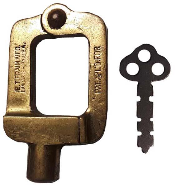 "E. T. FRAIM MFG. LANCASTER. PA. U.S.A. PAT.APL'D FOR". 2 5/8" high x 1 5/8" wid